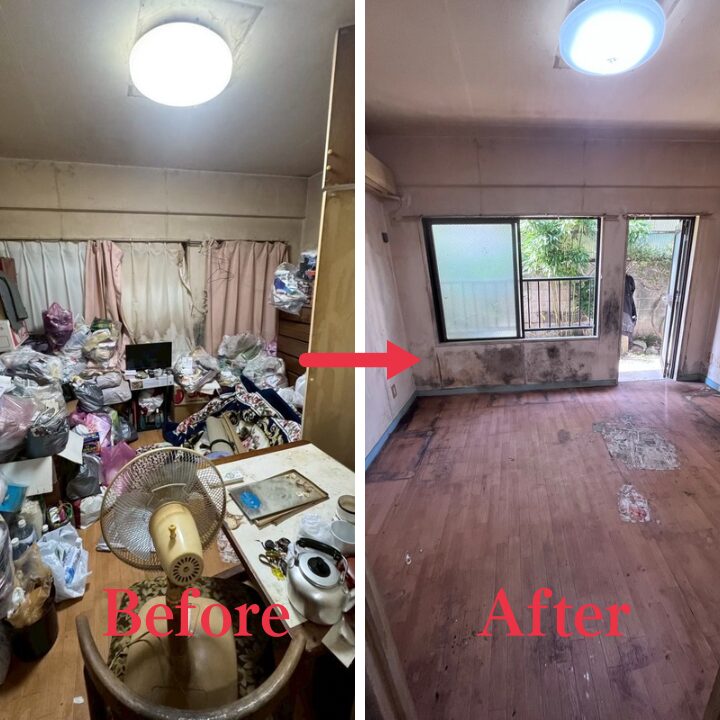 エレベーターのあるマンションでしたが、共用部分や壁を傷つけないよう、しっかりと養生を行ってから搬出作業を開始しました。 お客様の方である程度まとめていただいていた物はスムーズに搬出し、分別が済んでいない細かな不用品については、スタッフが手際よく仕分けを行いながら回収しました。 また、近隣の方へのご迷惑にならないよう、迅速かつ静かに作業を行うことを心がけました。