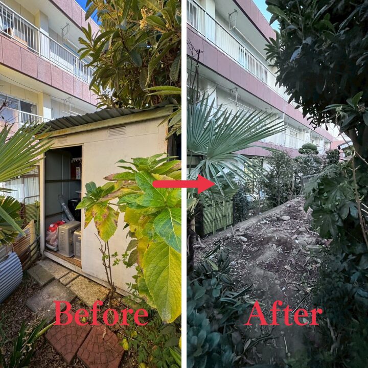 万全の損害賠償保険と清掃 カイケツホームは最大5,000万円までの損害賠償保険に加入しています 。万が一、お庭の塀や植木に接触しても安心です。作業後は、倉庫があった場所を隅々まで清掃し、まるで最初から何もなかったかのような美しさに仕上げました。