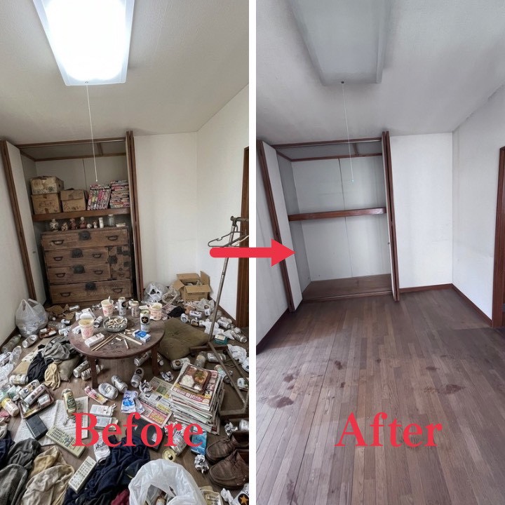 今回の現場はまさに時間との勝負でした!「来週には不動産会社の査定を入れたい」という熱いご要望に燃え、スタッフ総出で一気に片付けを完遂しました。ただ空っぽにするだけでなく、次に見学へ来る方の印象が良くなるよう見栄えにもこだわって作業を実施。お客様から「これでやっと前に進めます!」と力強いお言葉をいただき、最高に気合が入る現場でした!